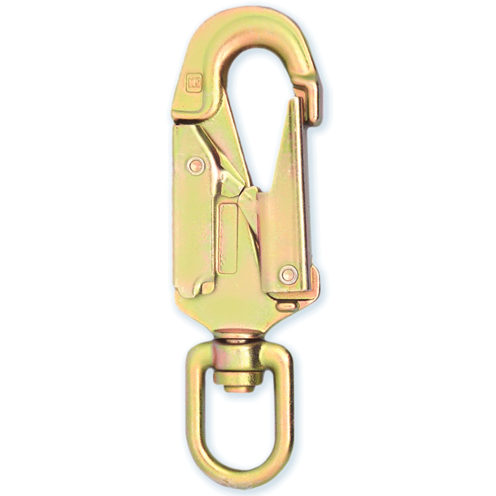 Made especially for rock climbing, as well as safety and rescue, this patented ANSI certified steel swivel snap hook is perfect for fall protection when you need it most. This Double Action Forged Steel Swivel Snap Hook is patented and features a double action, self-locking gate mechanism. Made from high tensile forged steel and a yellow / silver zinc plate finish, this powerful swivel snaphook is super strong with a minimum breaking strength of 50kN.